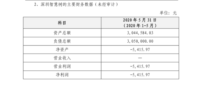 在公告中,开云体育·开云官方网站-开云体育(中国)科技披露了深圳智慧树的主要财务数据(未经审计),如下图所示。